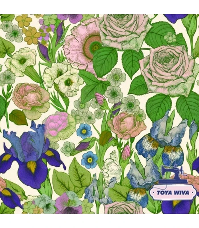 Et klassisk og tidløst blomsterprint, der giver dine syprojekter et let og elegant udtryk.