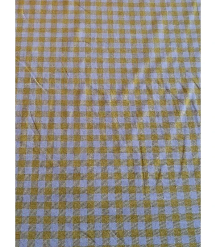 Denne bomuldsjersey har et klassisk ternet mønster i gul og hvid, som giver et frisk og sommerligt udtryk. Det tidløse ternede design passer perfekt til både børnetøj og lette beklædningsdele.