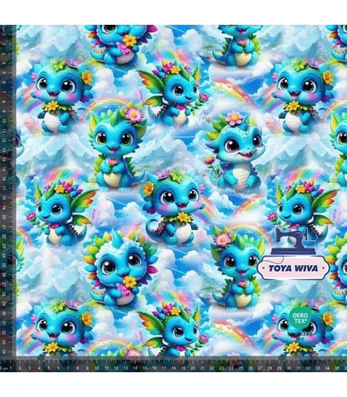 BOMULDSJERSEY>Digitalprint stof – Kvalitets bomuldsjersey med unikke prints>Bomuldsjersey med søde drager på blå baggrund