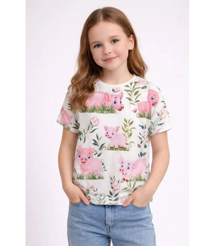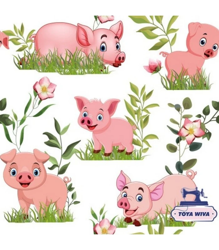 Denne bomuldsjersey med søde grise på hvid baggrund er et fantastisk valg til dig, der syr børnetøj med personlighed.