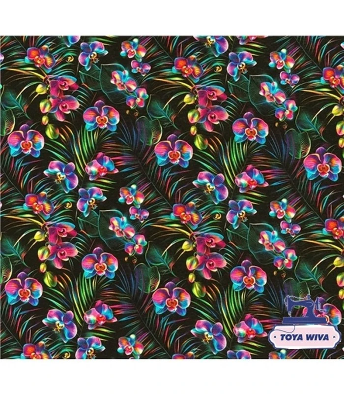 ORCHIDER PÅ MØRK BAGGRUND FRENCH TERRY BØRSTET
