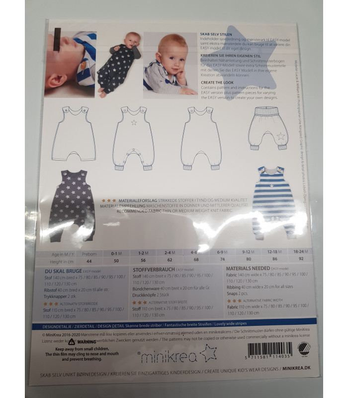 Minikrea 11420 er et sødt og komfortabelt baby symønster med bluse og bukser i str. 0-2 år. Perfekt til blød jersey og små hverdagsfavoritter.