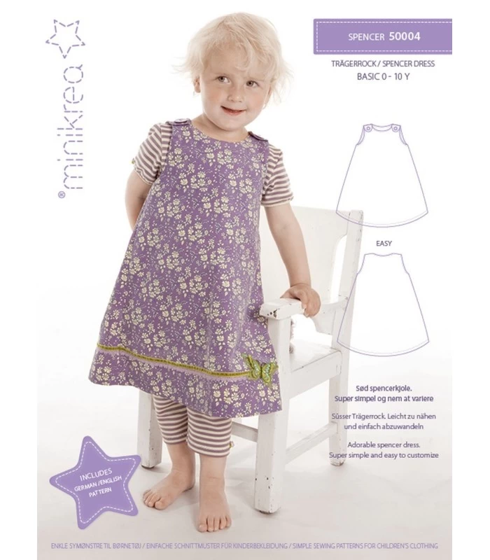 Minikrea 50004 er en klassisk spencerkjole til børn i str. 0-10 år. En alsidig model, der kan styles året rundt - perfekt til både hverdag og lidt finere brug.