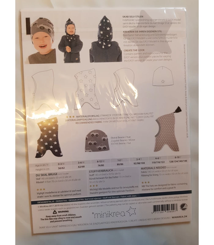Minikrea 50600 er et populært elefanthue symønster til børn i str. 0-10 år. Kendt for sin gode pasform og komfort - perfekt til jersey, rib eller uld.