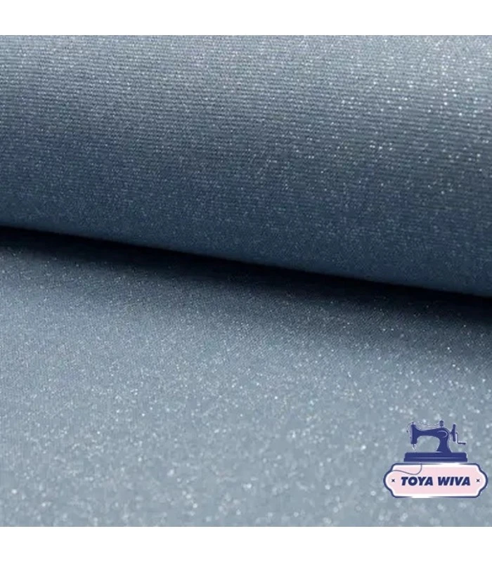 Dusty Blue rib med sølv lurex og glimmer. En elastisk og blød rib som giver en flot dekorativ afslutning på bluser, kjoler, sweatshirts og bukser.