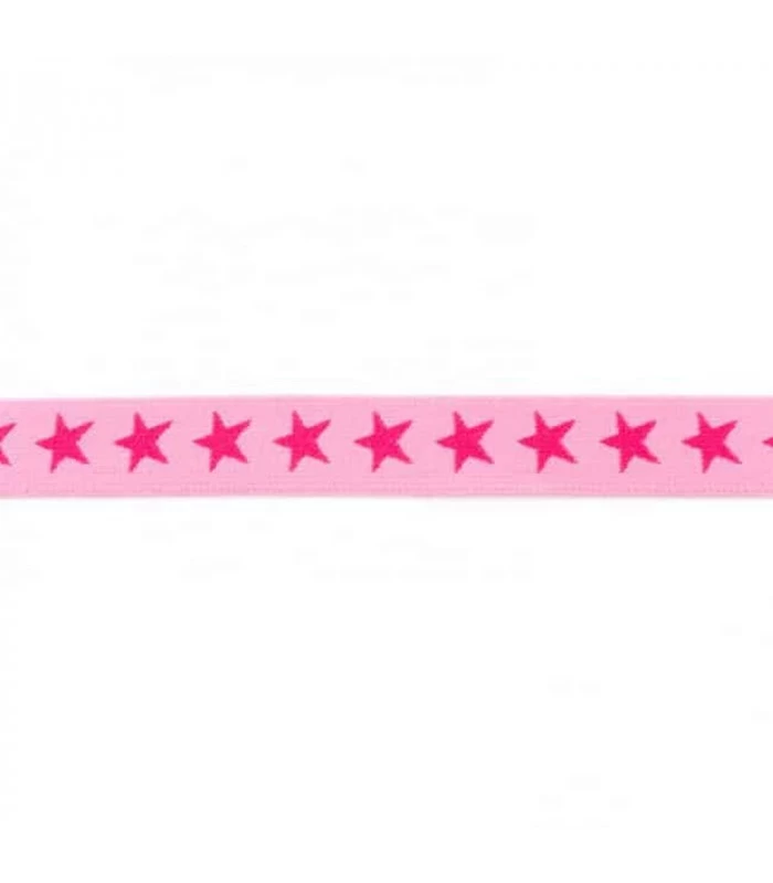 TILBEHØR>ELASTIKKER>Stjerneelastik – Undertøjselastik med stjerner i 2 cm, 2,5 cm og 4 cm>Stjerneelastik 2 cm – Blød undertøjselastik med stjerner>Undertøjselastik 2 cm – Lys pink med pink stjerner