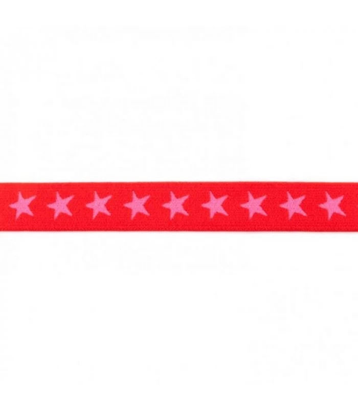 TILBEHØR>ELASTIKKER>Stjerneelastik – Undertøjselastik med stjerner i 2 cm, 2,5 cm og 4 cm>Stjerneelastik 2 cm – Blød undertøjselastik med stjerner>Undertøjselastik 2 cm – Rød med pink stjerner