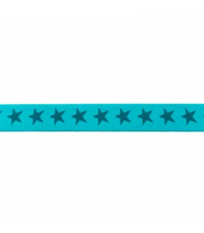 Undertøjselastik 2 cm i turkis med petrol stjerner.