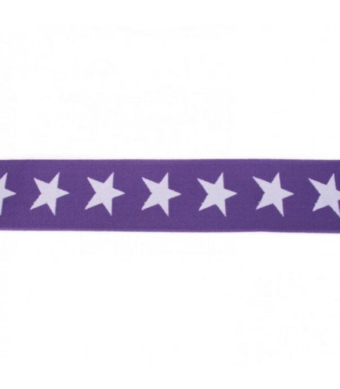 Denne undertøjselastik er 4 cm bred (40 mm) og har et flot design i lilla med hvide stjerner. Den bløde kvalitet gør elastikken behagelig mod huden og velegnet til både børn og voksne.