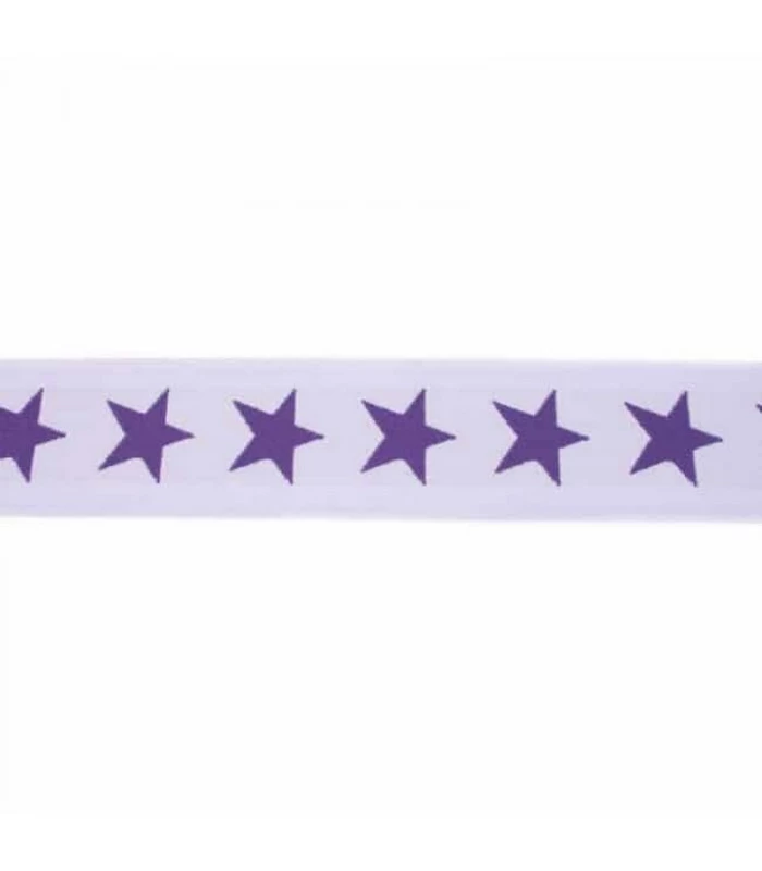 Denne undertøjselastik er 4 cm bred (40 mm) og har et flot design i lys blålilla med lilla stjerner.
