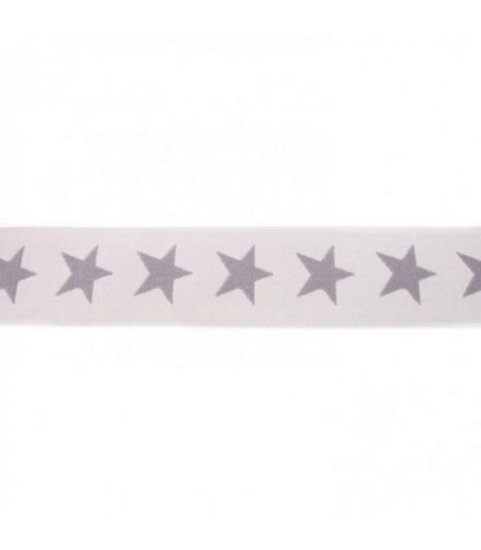 Denne undertøjselastik er 4 cm bred (40 mm) og har et stilrent design i lysegrå med kontrastfulde mørkegrå stjerner. Den bløde kvalitet gør elastikken behagelig mod huden og velegnet til både børn og voksne. Elastikken har en god strækbarhed og giver en flot og professionel afslutning i linningen.