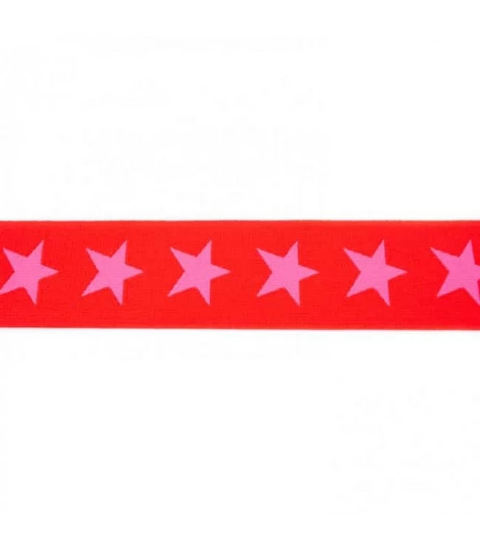 Denne undertøjselastik er 4 cm bred (40 mm) og har et flot og iøjnefaldende design i rød med pink stjerner.