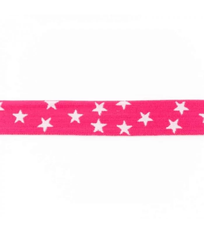 Undertøjselastik 2,5 cm i pink med hvide stjerner.