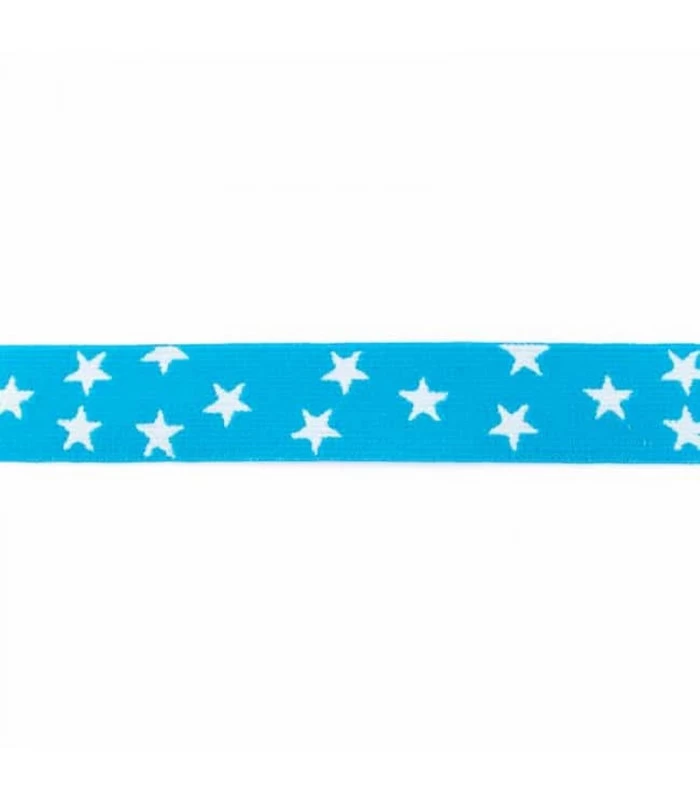Undertøjselastik 2,5 cm i turkis med hvide stjerner.