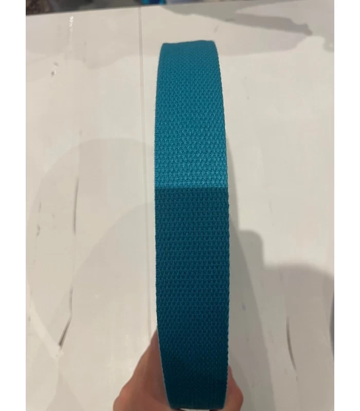 Lys petrol gjordbånd 32 mm – slidstærkt taskebånd i bomuld/polyester. Perfekt til tasker, remme og kreative projekter.